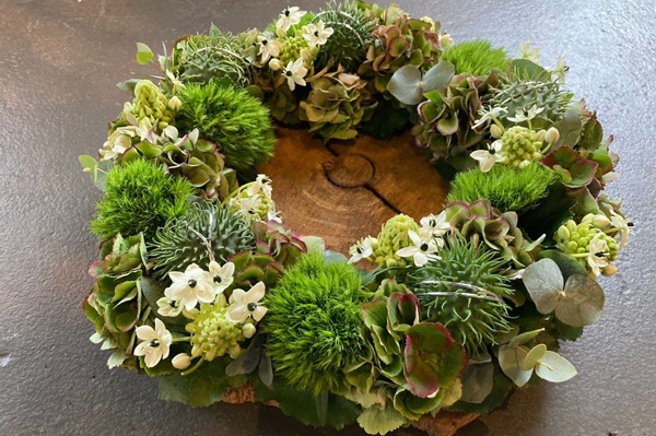 Dit is een Natuurlijk Mooi krans. Dit bloemwerk is `Effen Anders` en uniek en kan afwijken van de foto.